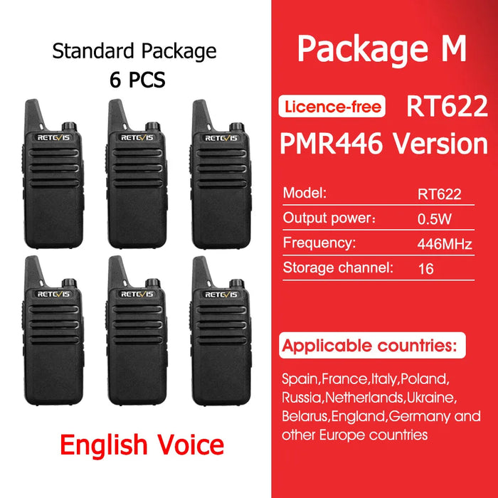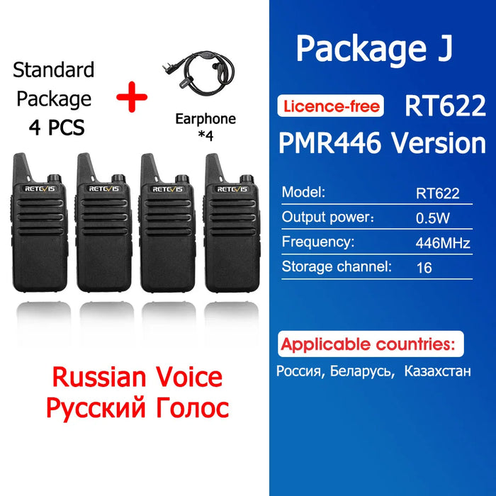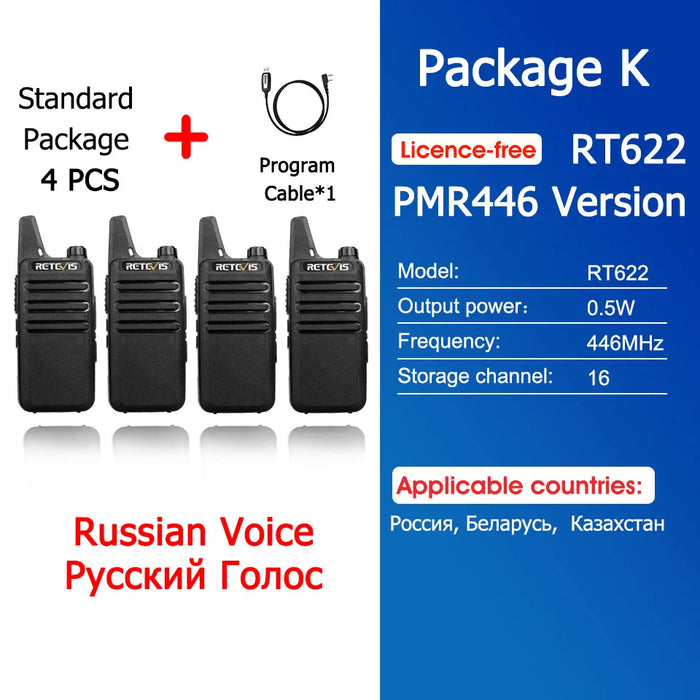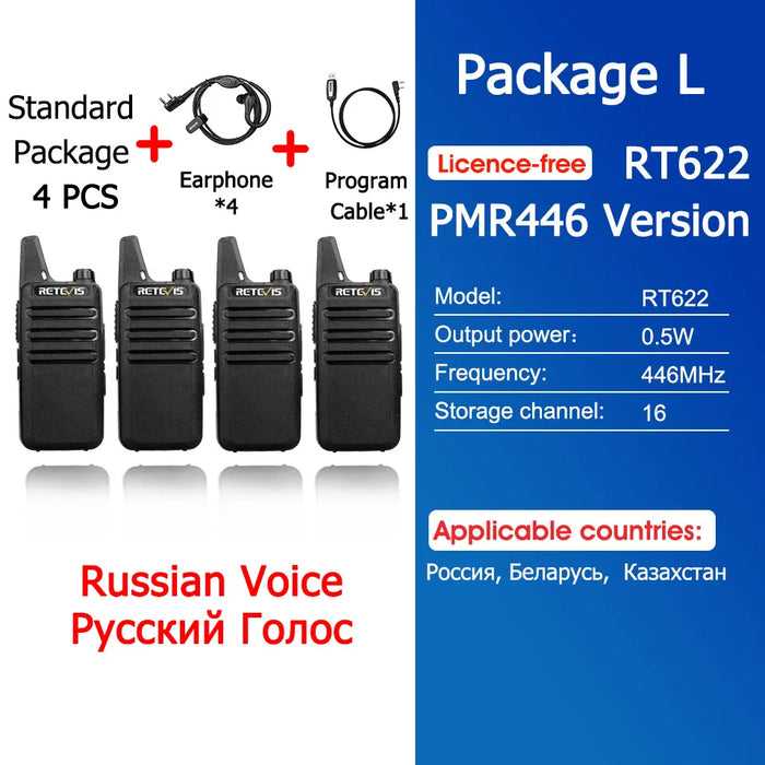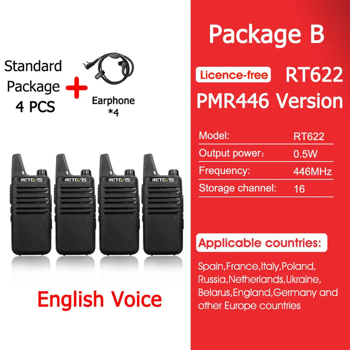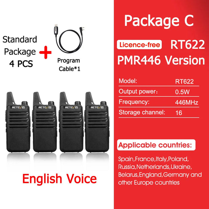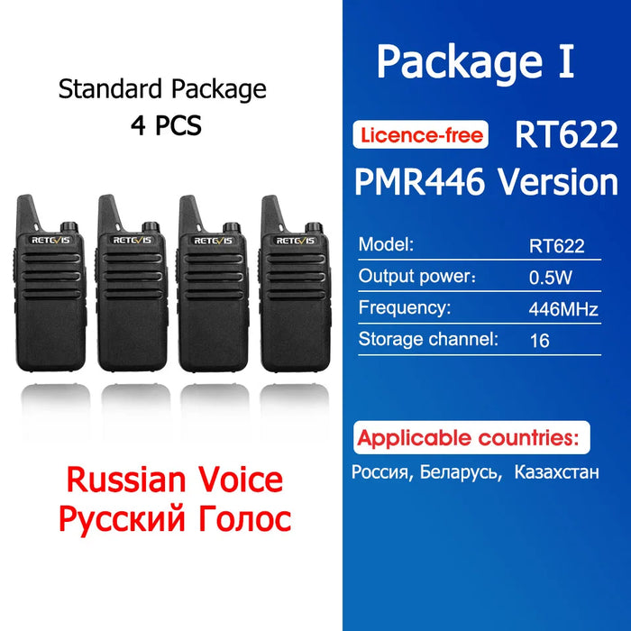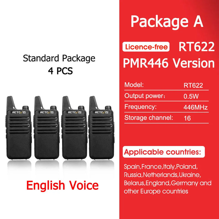 - ✅ 4x Retevis RT622 Mini Walkie-Talkies