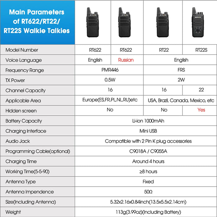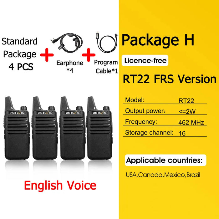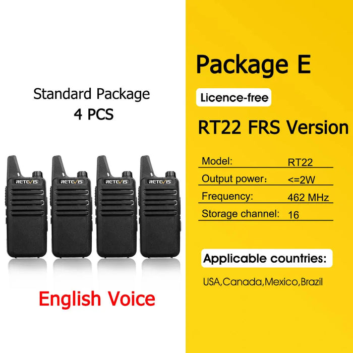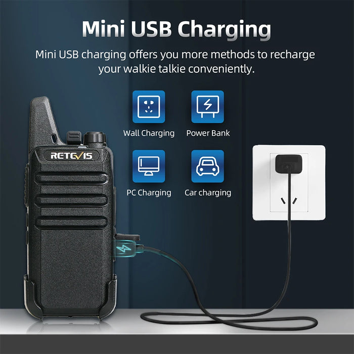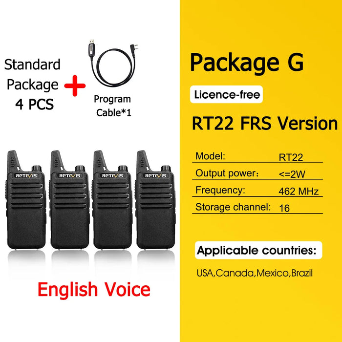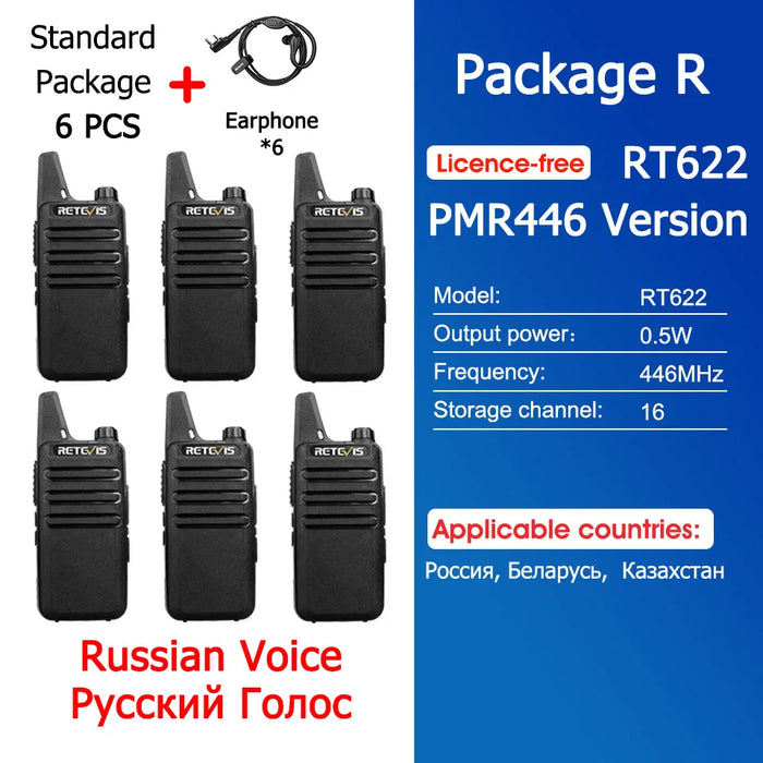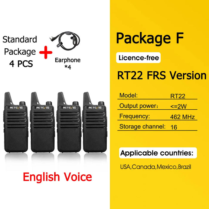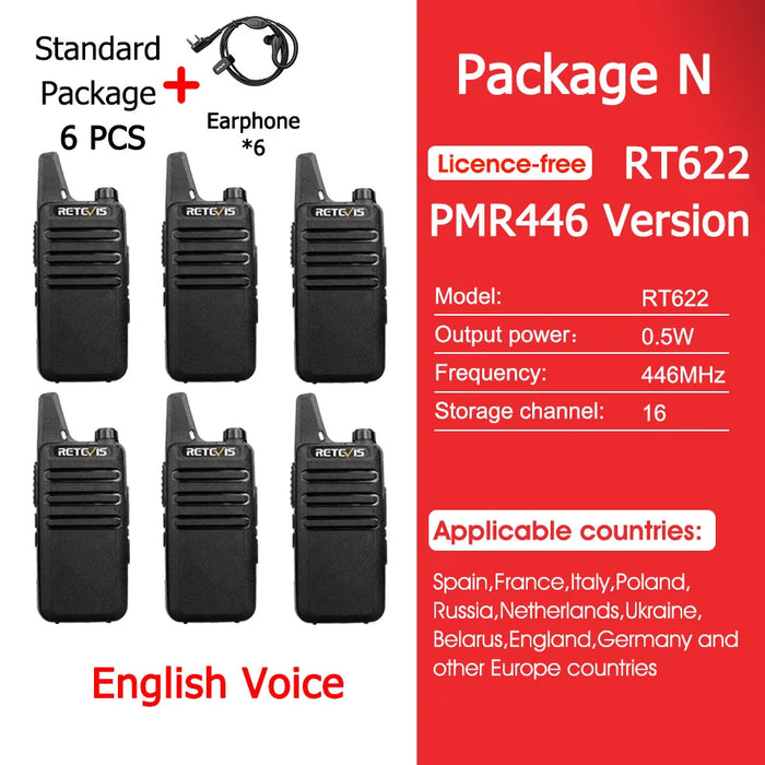 - ✅ 4x Retevis RT622 Mini Walkie-Talkies